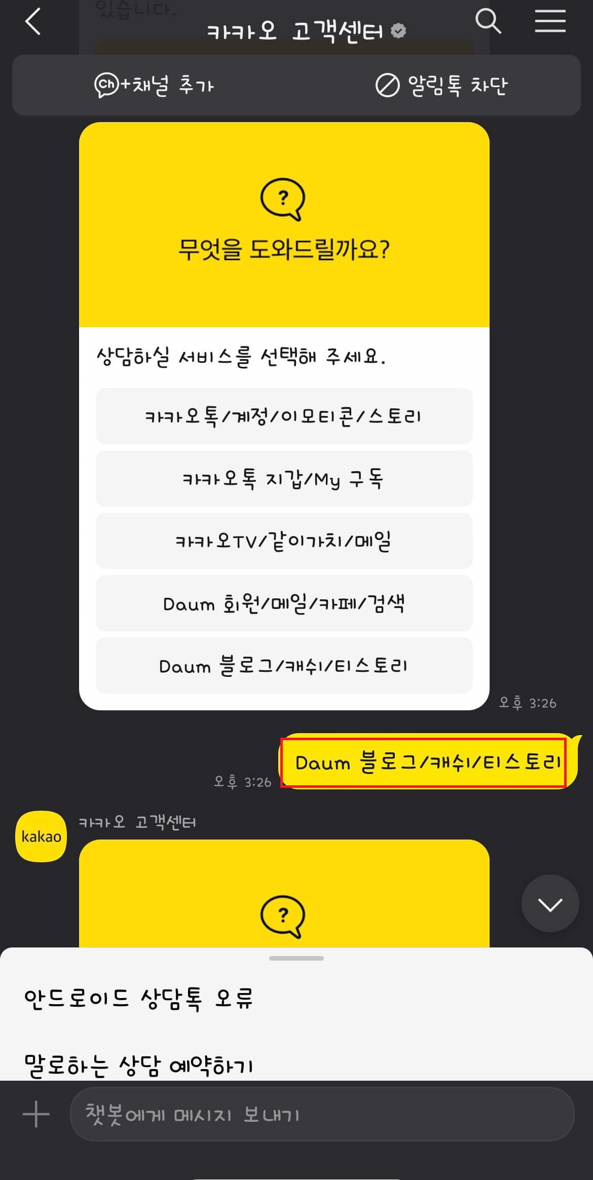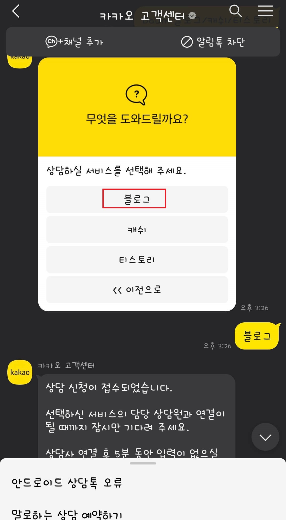 ▶ 카카오톡 고객센터 - 블로그 - 상담사 연결 -상담 문의
