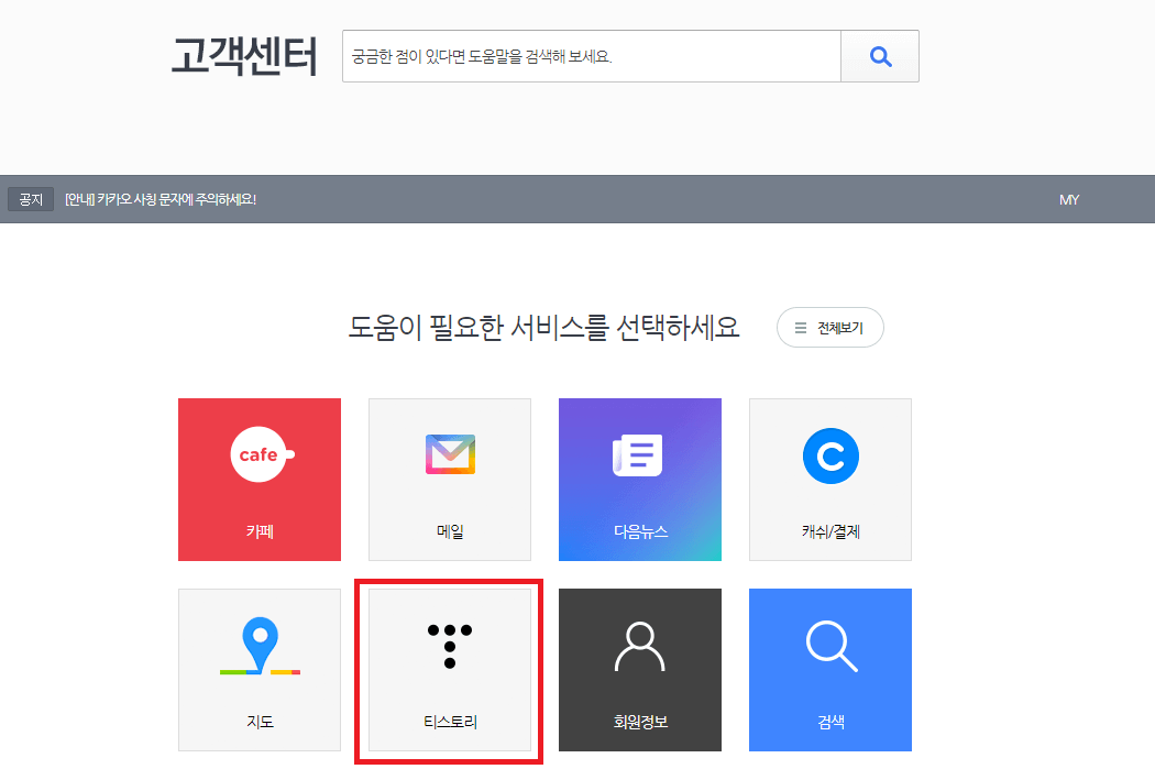 다음으로 카카오 고객센터 문의입니다.